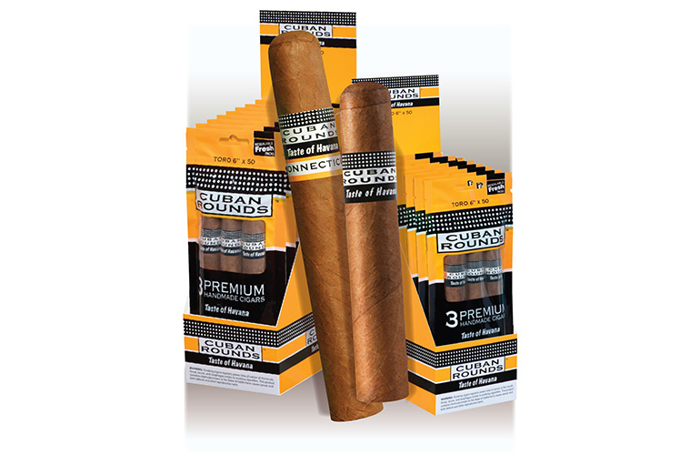 Kretek International’s Cuban Rounds value starts with premium wrapper and filler tobacco blends that deliver a consistently smooth, medium-mild taste. They’re a perfect fit in the tobacco shelf set with eight fresh packs per tray. Cuban Rounds are hand-made in Nicaragua in natural, Maduro, and Connecticut shade wrappers. They are also offered in four popular sizes for any cigar occasion, from weddings or golf to just watching the sunset.